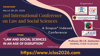 The Second International Conference on Law and Social Sciences will be conducted during 28 – 29, March, 2026 via online. The Scopus Indexed* International Conference is organized by the International Institute of Justice & Police Sciences, Bengaluru, Karnataka, India (World’s Ist Institute of Excellence in Crime Science, Justice Science, Police and Security Sciences), a Non-Profit Academic Institute and an Independent Think Tank).